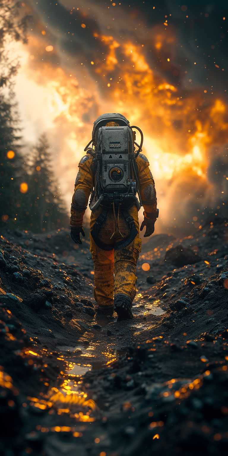 Download this stunning HD wallpaper featuring a brave firefighter amidst a blazing forest, capturing the essence of courage and heroism. Perfect for your mobile phone’s background, experience the intense and dramatic scene of a wildfire, illuminating the screen with vibrant flames and embers. Feel the heat and immerse yourself in this visually striking moment every time you unlock your device.